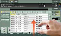 フリック 移動したい方向へ向けて画面を軽くはじくような感覚で指先をスライドさせる動作のこと。宛先リスト、BOX保存リストなど目的のものを検索する際に便利です。 |